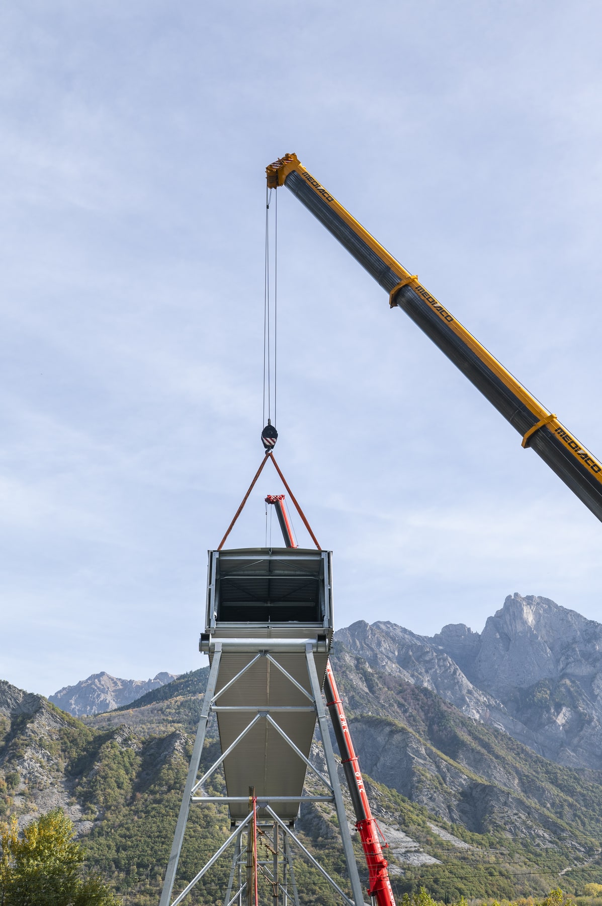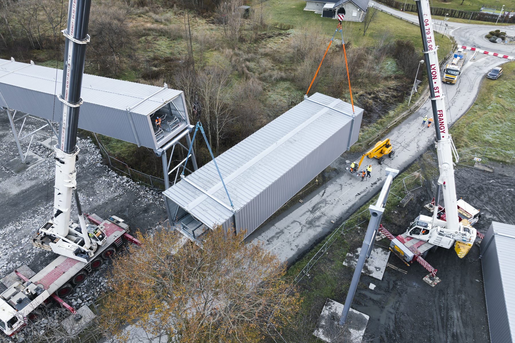Pose d’une galerie métallique pour convoyeur à matériaux — TELT CO08 / Implenia–NGE