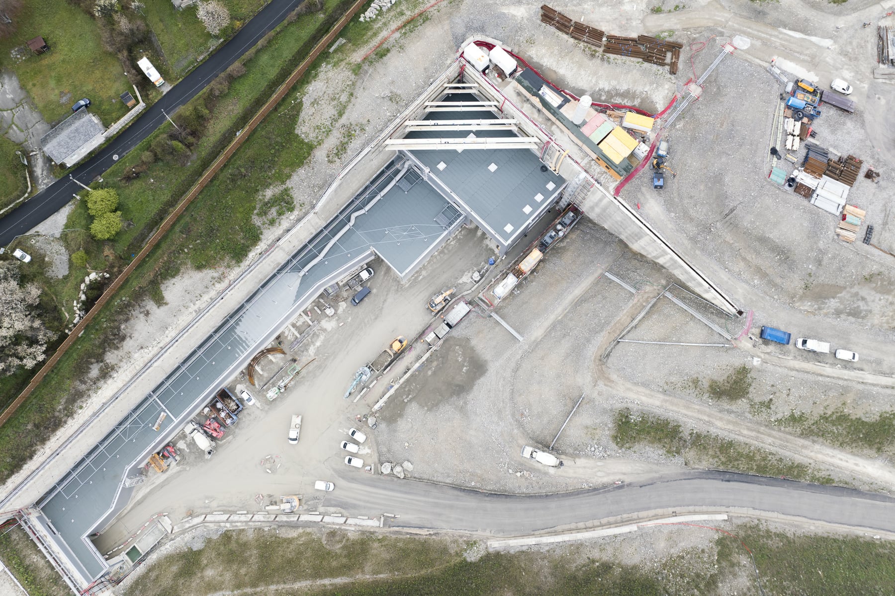 Par ailleurs, j’ai documenté la pose d’une galerie métallique destinée au convoyeur à matériaux. L’ouvrage prenait place au-dessus des voies ferrées, dans un environnement ferroviaire contraint. Voir le timelapse du levage. Le reportage devait montrer à la fois l’échelle de l’installation, la précision des opérations et la logique d’un dispositif technique peu courant (lot CO08 – IMPLENIA / NGE).