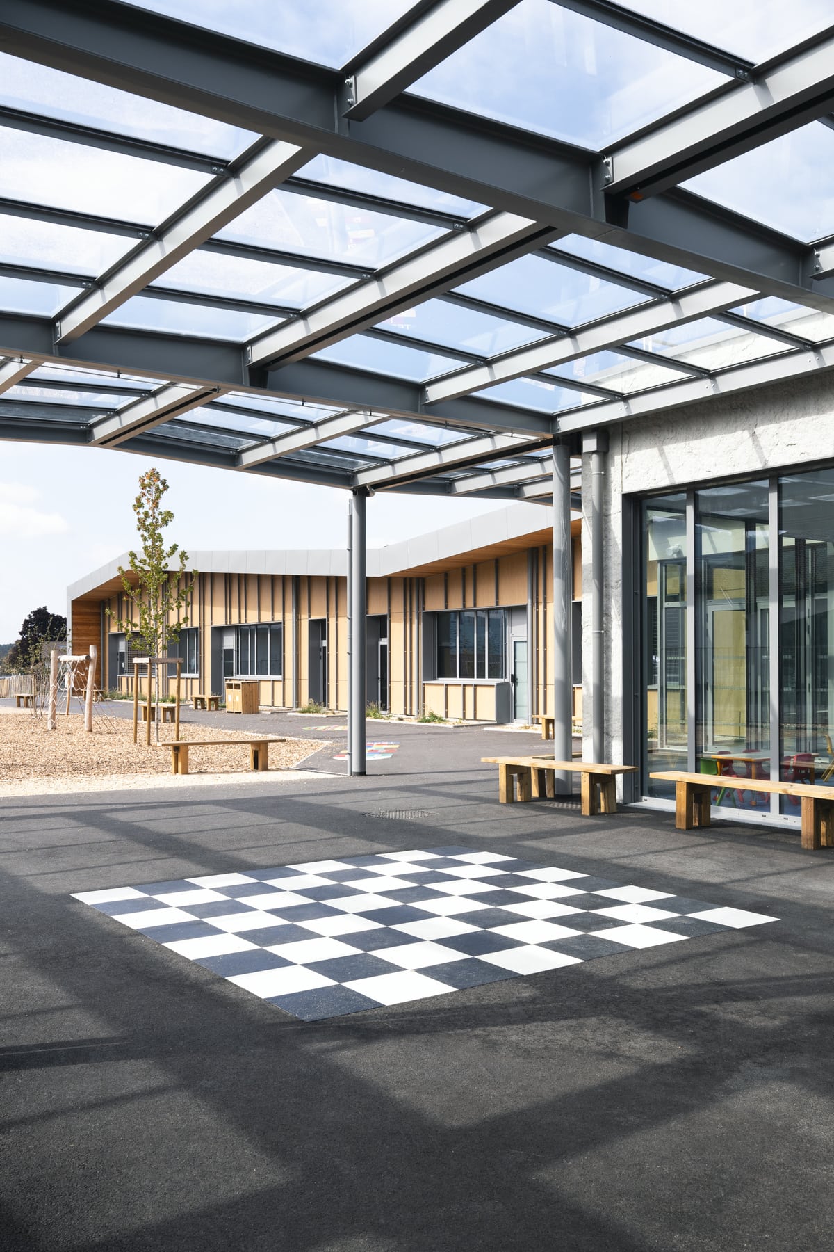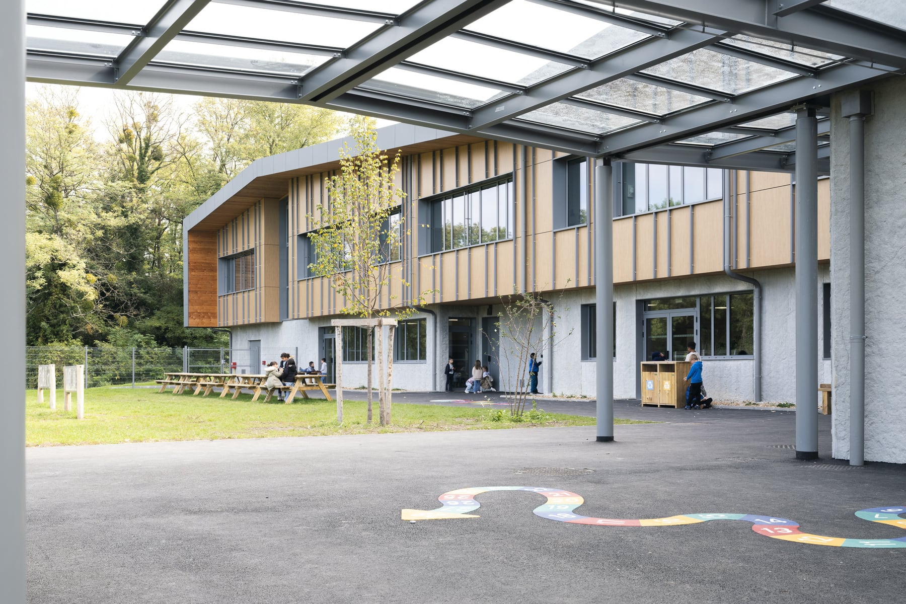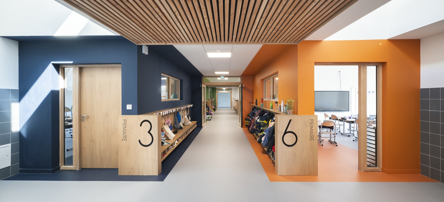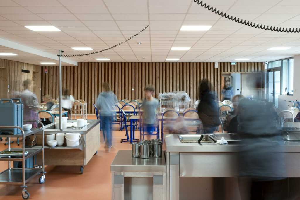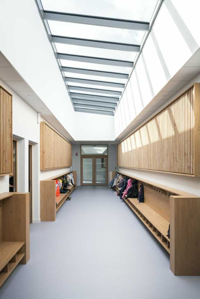 Une photographie d’architecture ne se limite pas à montrer un bâtiment vide et parfaitement ordonné. Elle doit aussi rendre perceptible la manière dont un lieu fonctionne, accueille et organise la vie de ses utilisateurs. Sur un équipement scolaire comme celui-ci, cet enjeu devient central.