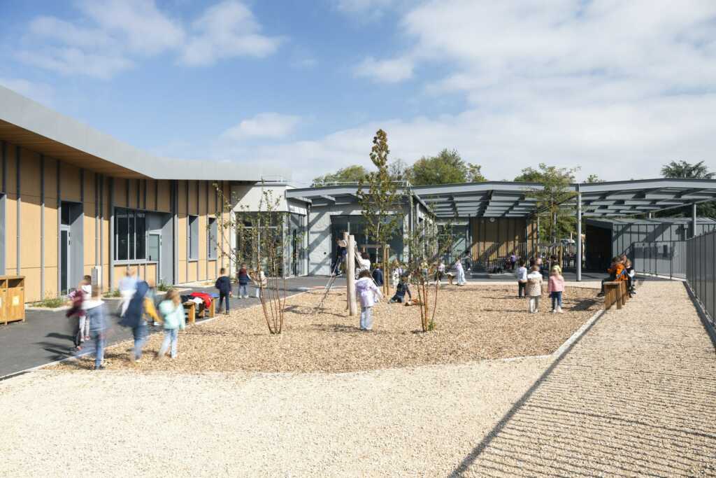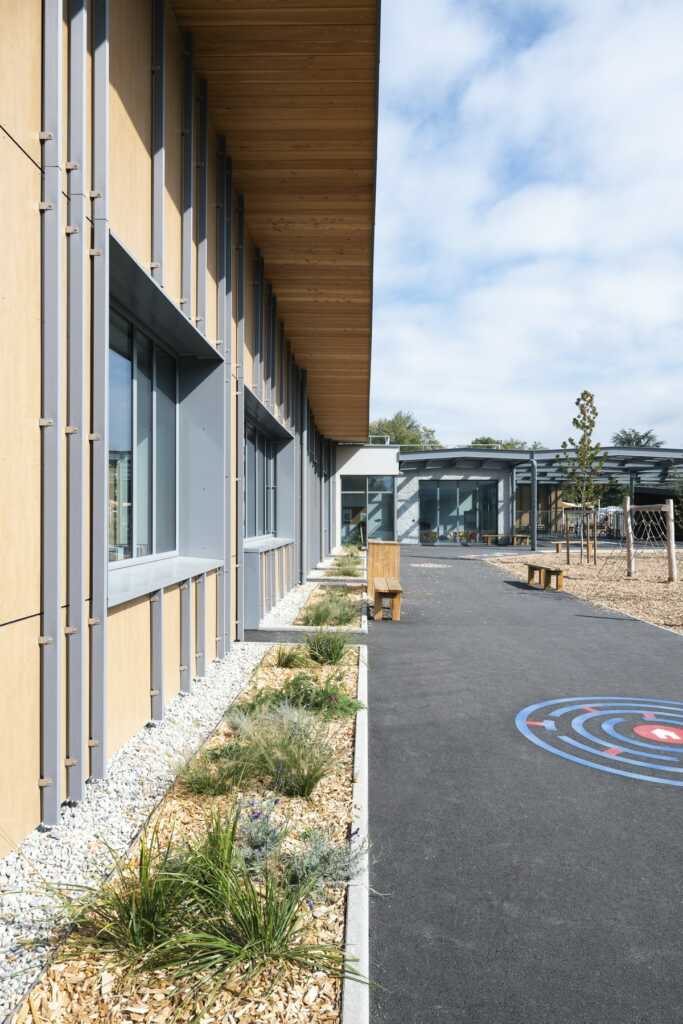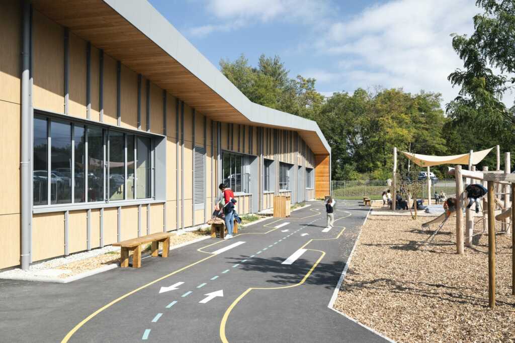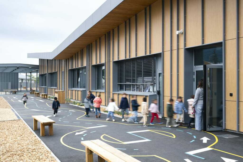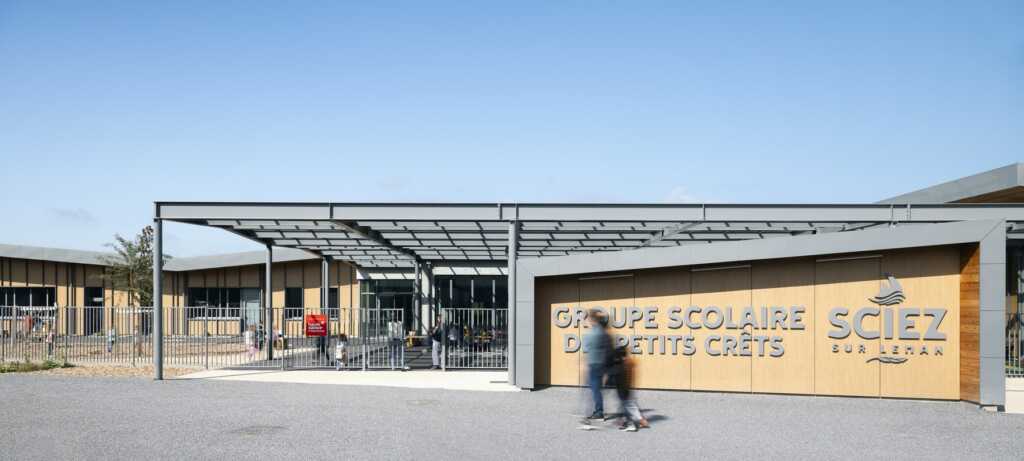 Ce projet de photographie d’architecture porte sur un équipement scolaire livré en Haute-Savoie pour la rentrée de septembre 2025. L’école de Sciez rassemble plusieurs bâtiments pensés pour accueillir les temps d’enseignement, les usages périscolaires et la restauration, dans une lecture cohérente de l’ensemble mais aussi des espaces extérieurs.