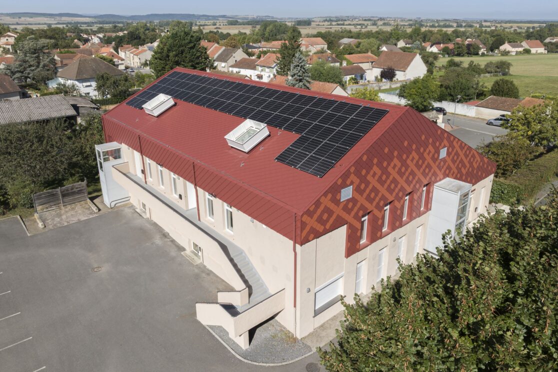 Cette salle polyvalente a été rénovée, la toiture et les façades sont traitées en produits PREFA.