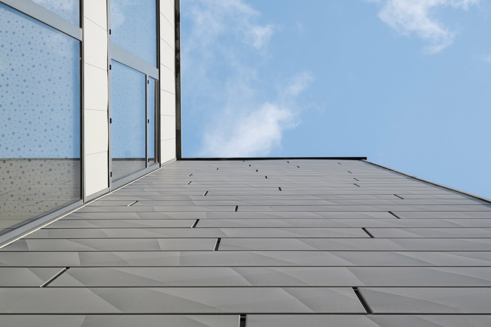 Construction d’un immeuble tertiaire où les produits PREFA sont en partis en façade.