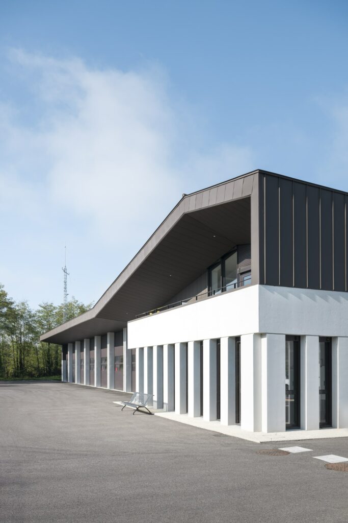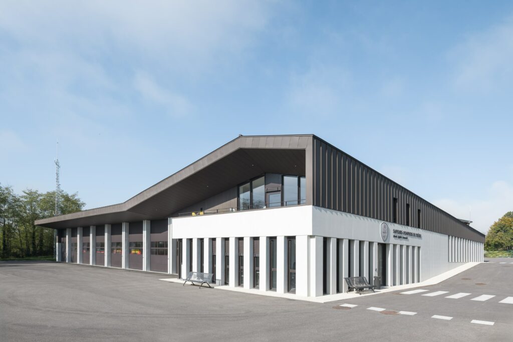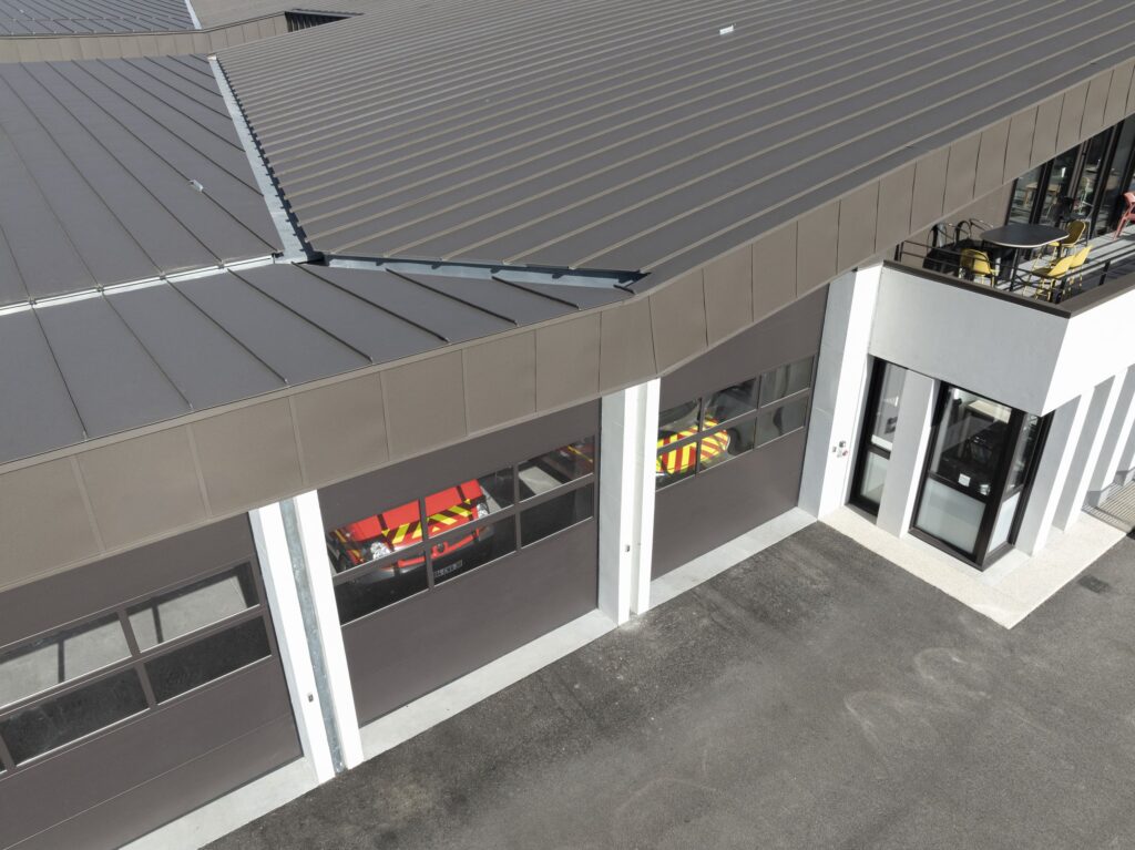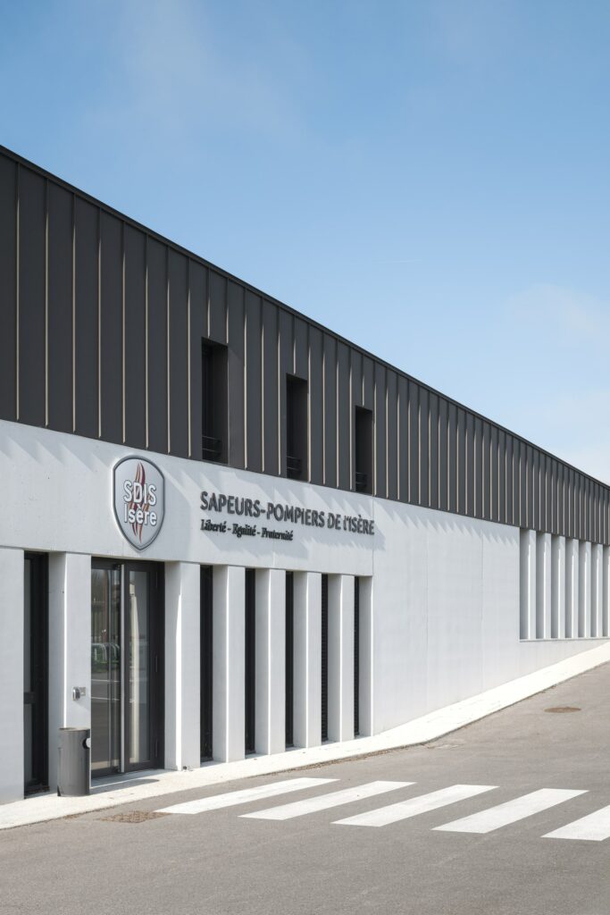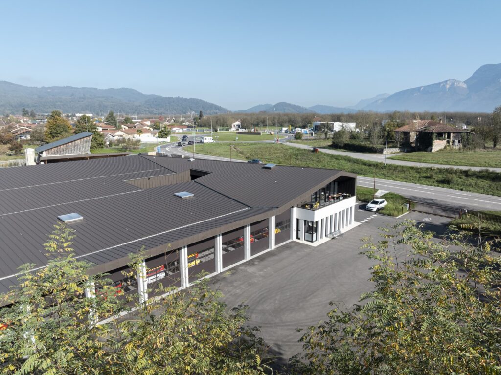 Construction d’une caserne de pompiers pour le SDIS 38 et d’un centre routier pour le Département de l’Isère. Les façades et la couverture sont en grande majorité recouvertes de produits PREFA.